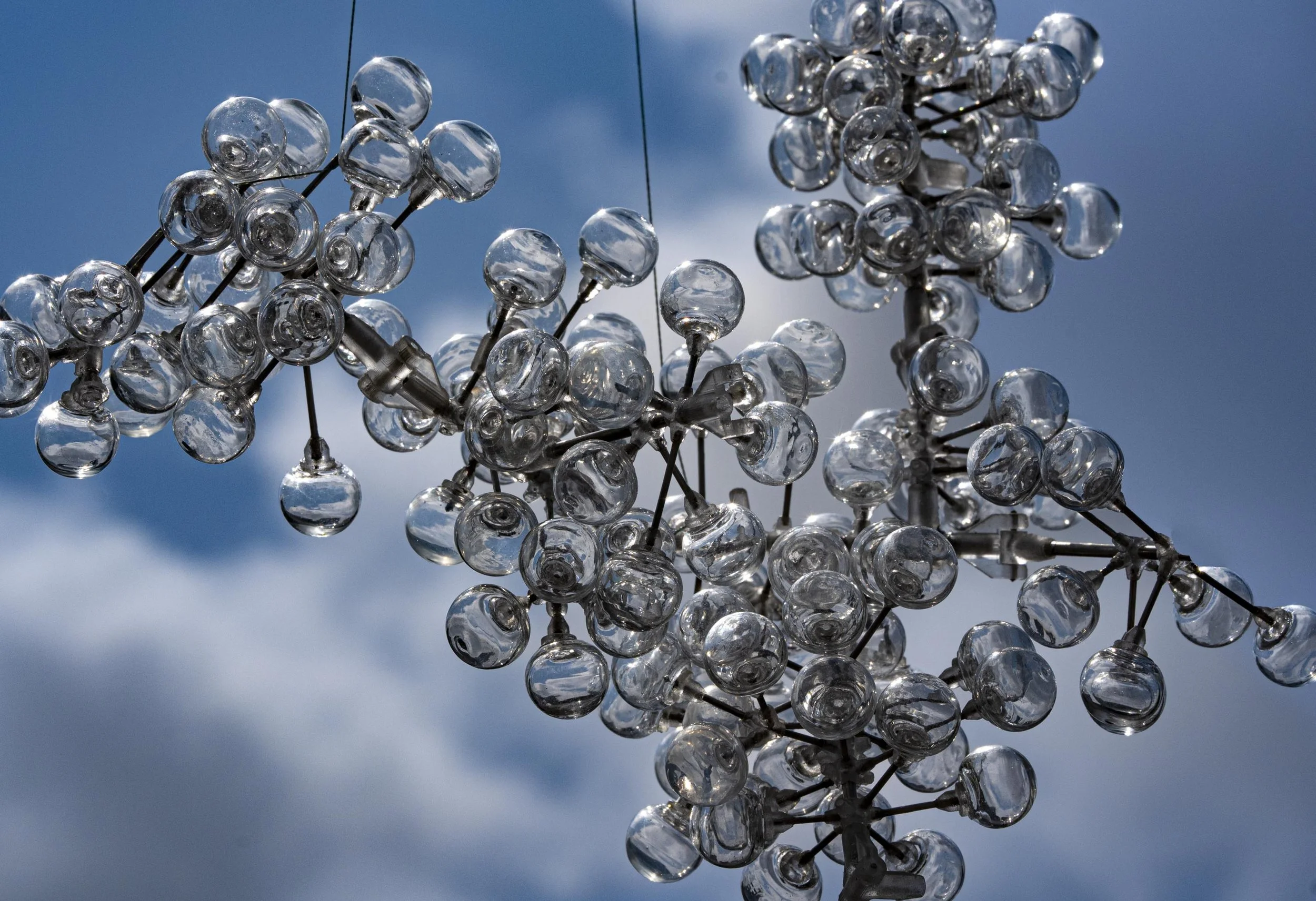 In making this sculpture, I’m attempting to create an object that follows a similar internal logic to that of a cloud. Just as the molecules in the cloud push and pull at each other and balance the forces they encounter, so does this sculpture. It takes information from its environment and rearranges itself constantly to find transitory balance. Reacting to the air currents in the room.